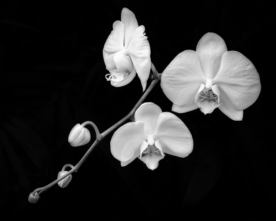 Love the flowers, to me the background is still a distraction. I like the mono version. It is nice and sharp on all the flowers. I darken the background to black. |