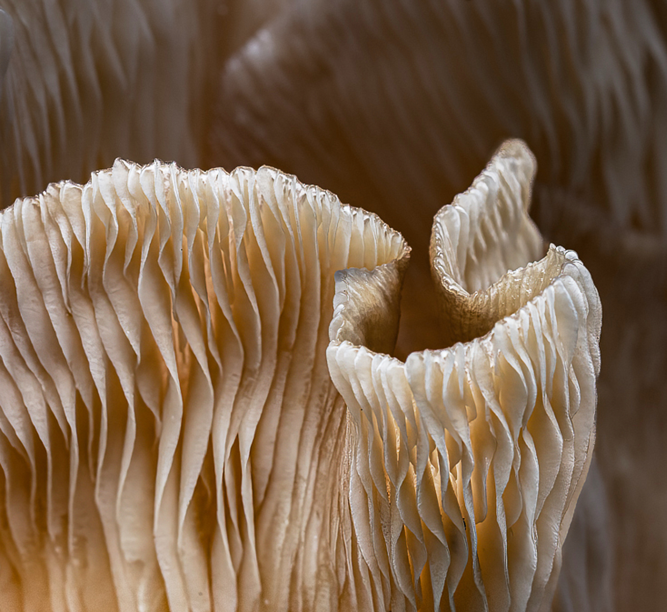 Wonderful patterns and shapes to this fungus, I can see it would be fun to play with. You chose a very interesting section with great curves and depth to it. Having the shallower DOF so that the background bit is soft is a good choice to help that foreground bit pop.