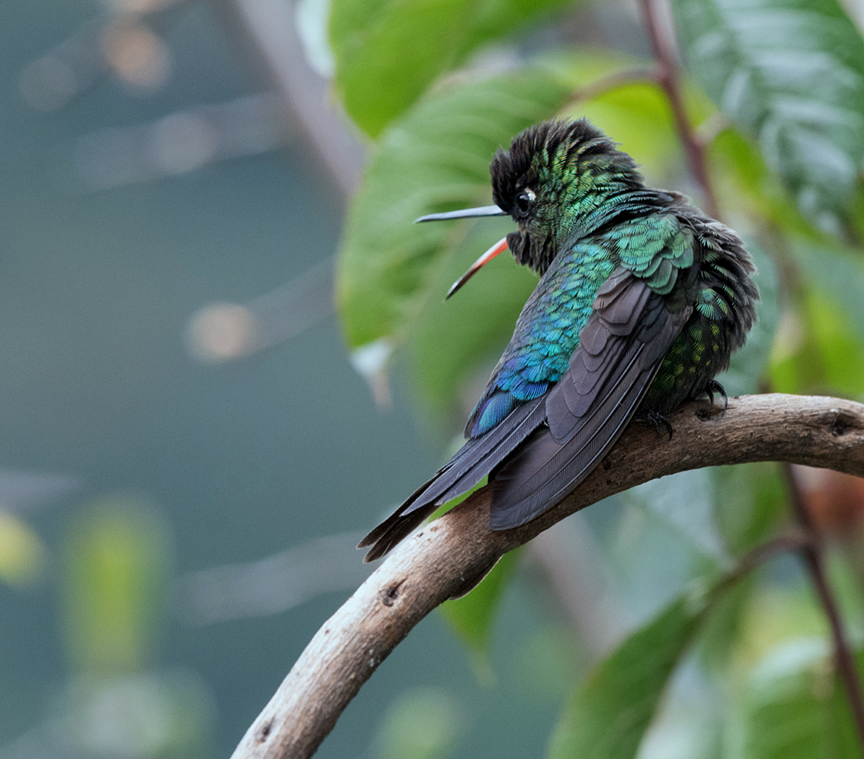Hi Susan, was this at Paraiso Quetzal lodge? That was one of my favorite locations, there were so many hummers! The Talamanca has a black bill; this red-billed one is the Fiery-throated. They are full of "spit and vinegar", and you captured that attitude really well.