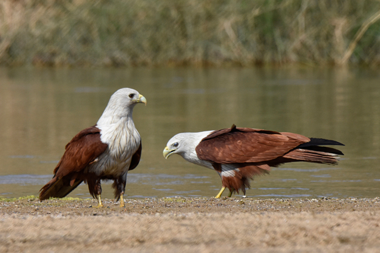You ask for improvement advice. I find that the foreground sand and background plants look a bit strange. Did you apply clarity to the entire frame, or selectively to the birds? Too much clarity applied to the out-of-focus areas can result in this type of appearance. If this is in the original, you could selectively apply negative clarity to those areas to soften up the appearance.