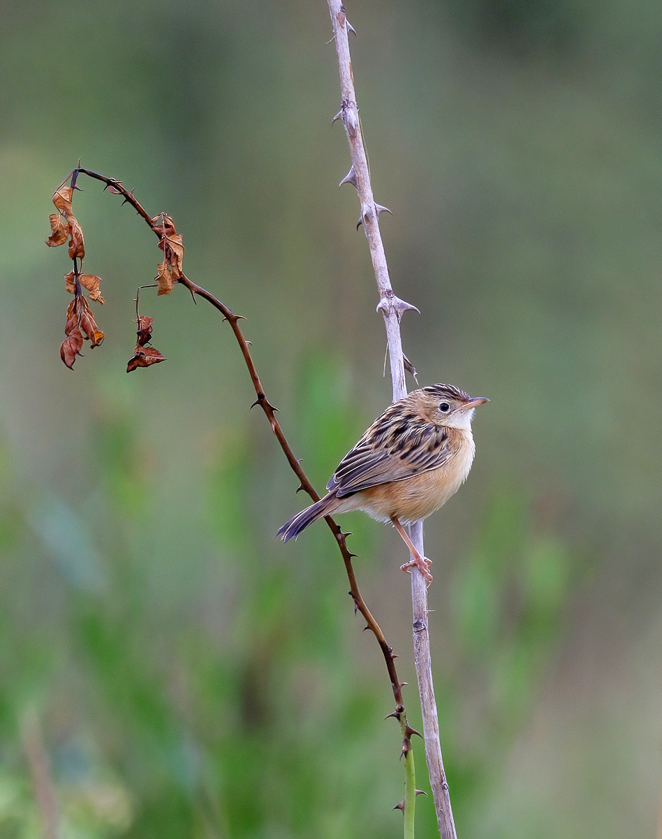Cropping is obviously a matter of taste! I personally like the bird small in the frame- to me it tells the story of how tiny this bird actually is. Because the setting is so simple, it is a very minimalist image which I find very appealing. I do think though you could lose a bit of space on the right, particularly the one stick that stands out. Also I find the image a bit dark, although again that's a matter of taste. Here's my interpretation to consider. |