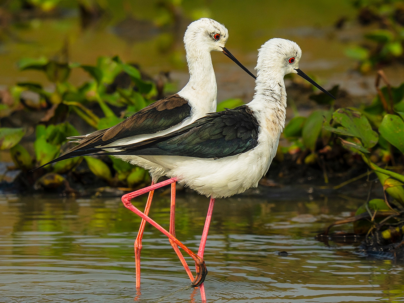 nice capture of this pair. You can see the different plumage of the female and male. I like the position of the birds with respect to each other, and the raised leg of the male. I agree there needs to be more room at the bottom so that the "virtual legs" aren't cut off.