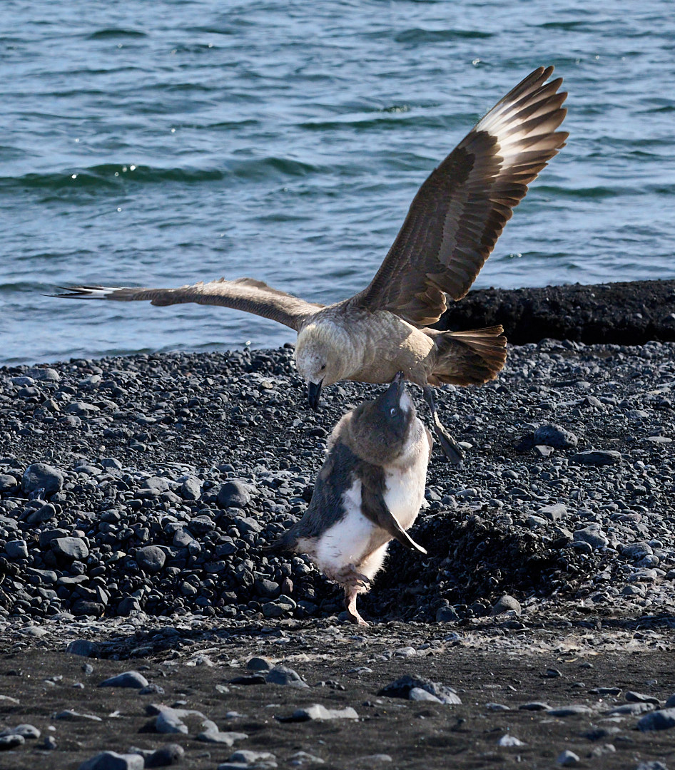 Dave, this chick is probably too big for the Skua to try to take, unless it was already compromised in some way. I believe it was trying to get it to cough up the meal it'd just eaten. |