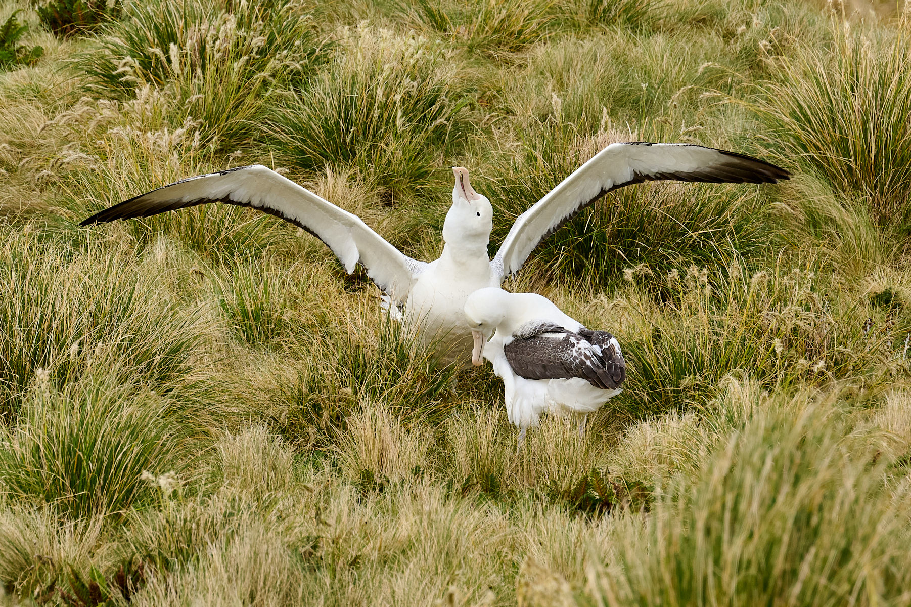 That colony has grown a lot since I was there 15 years ago! It is so special to get to see the younger chicks in that colony. This is a very sweet story with the little one getting fed and the other parent looking on. Nicely cropped / framed.