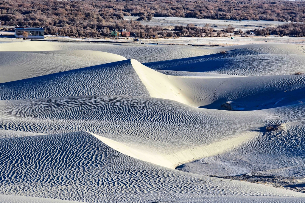 The main reason to include the background and the building in the top right corner was to give an idea about the size of the dunes. We have a desert area in North western part of the country called as Thar where we get some huge dunes also. |
