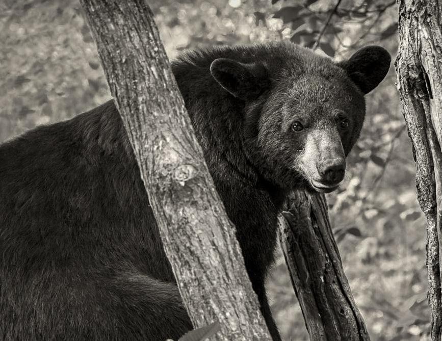 LuAnn, It's a great image and the bears expression is what pushes it over the top. My main suggestion would be to crop it tighter to get rid of the spot behind and below the bear's butt. :) It's distracting, but don't crop too tight. I've attached my suggestion. Also dropped the hightlights and exposure of the background, took the highlights down in the tree in front of the bear and added some clarity to the bears face in an effort to really pull the views eyes into the face and reduce distractions. Wouldn't qualify as a "Nature" photo though. Re memory cards, my camera has two and I always save the same image to both cards, then copy them to my laptop with a back up to an external drive and I try to avoid reusing cards during a trip. It's overkill but that way I effectively have 4 copies of each image and can separate them in different pieces of lugged for the trip home. |