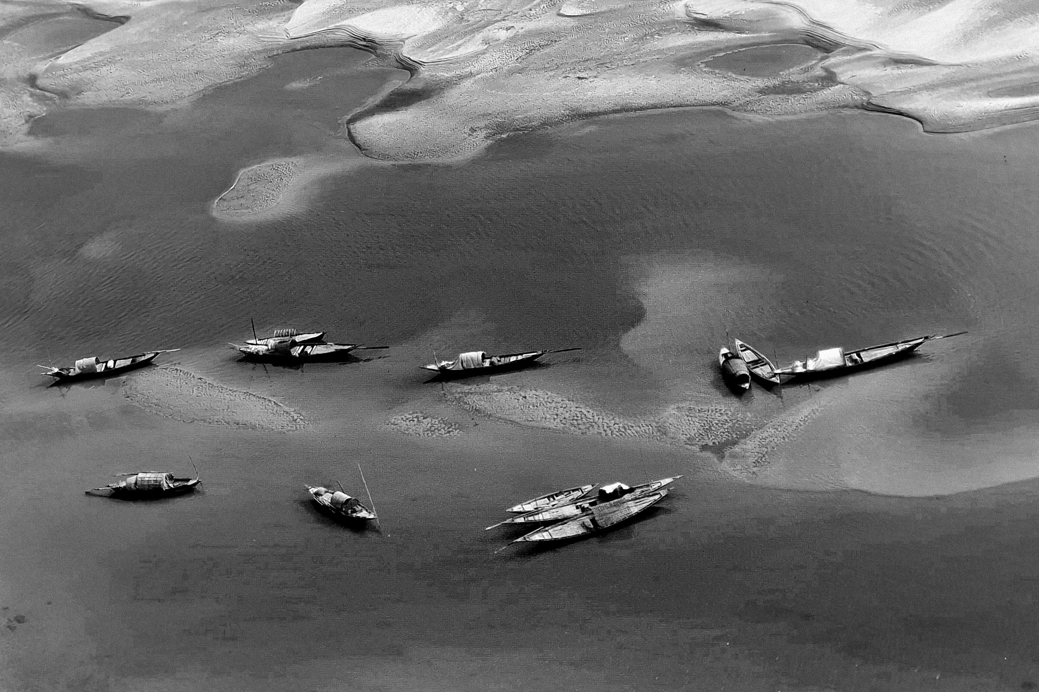 Ok, Like WOW! Piloting a bell helicopter, that's fantastic and shooting while doing it is either real talent or something a crazy man would do. But, I love the image and tend to agree with Pete, it's needs to be cropped. The bright textured area at the top of the image competes visually with the main subject. But i think Pete's crop is too tight and needs some of the dune like pattern as an offset to the boats, so here is my go at it. As always, it's your image so go with your gut. |
