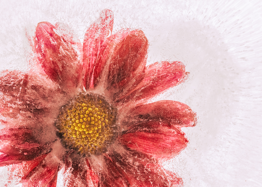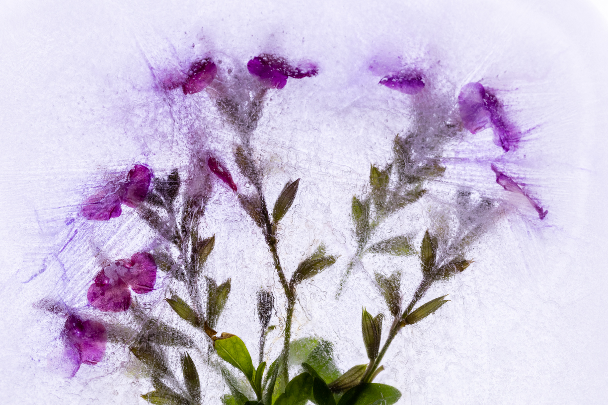 Those lines in the ice are mesmerizing... and great contrast between the cold iciness of the ice and the warm color in the rocks. |
