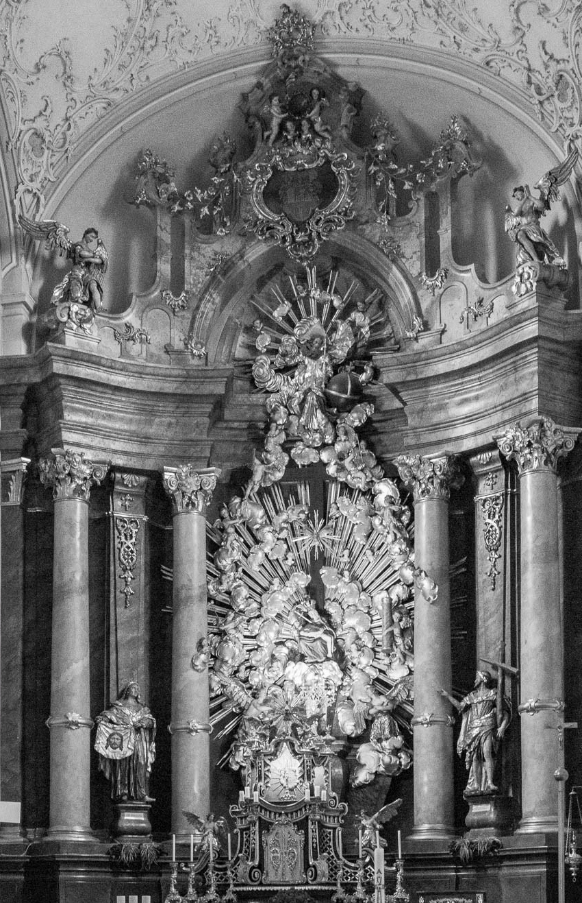 Looks really good. The perspective modification makes the image more impressive. The central part of the image (is this an organ?) is a very effective black and white look. IMO the left edge and the pews detract from it. Here's my crop without those elements: |