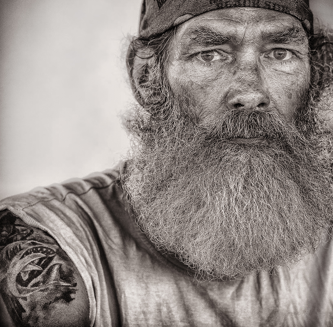 Very nice composition. I find the hand a little too "crunchy", i.e. it could be a little softer, in order to focus more on the face. You could do great things experimenting with burning, IMO, particularly around the top left side of the image. |