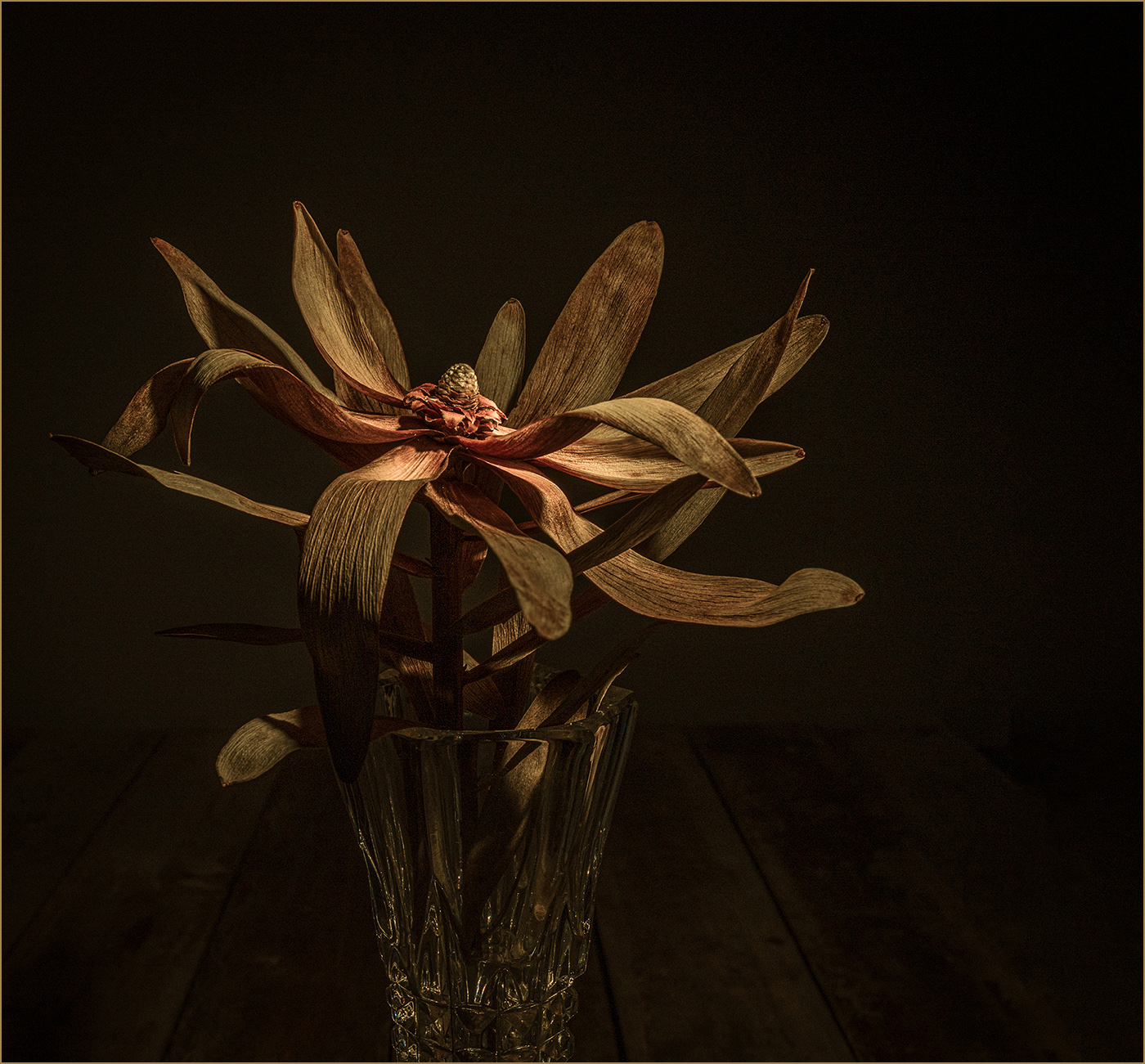 I like your revision. To me, what caught my eye when I saw the plant was two things, the beautiful flowers and the aging process on the stem. Your change preserved those two items. |