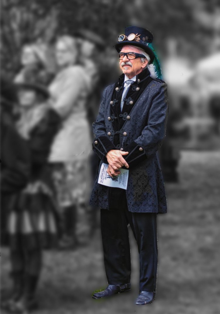 I took a different approach to this image and focused on the "time traveler" by turning all of the image except him into mono chrome using an apple store simple program called colour splash. Then in Photoshop I used one layer and and masking to blur everything but him. I think that although this is a somewhat non conventional approach it does focus on the subject. I do agree with isaac's last statement regrding persons at this type of event who are dressed for the event likely would mind being photographed and might even to some degree help you out. |