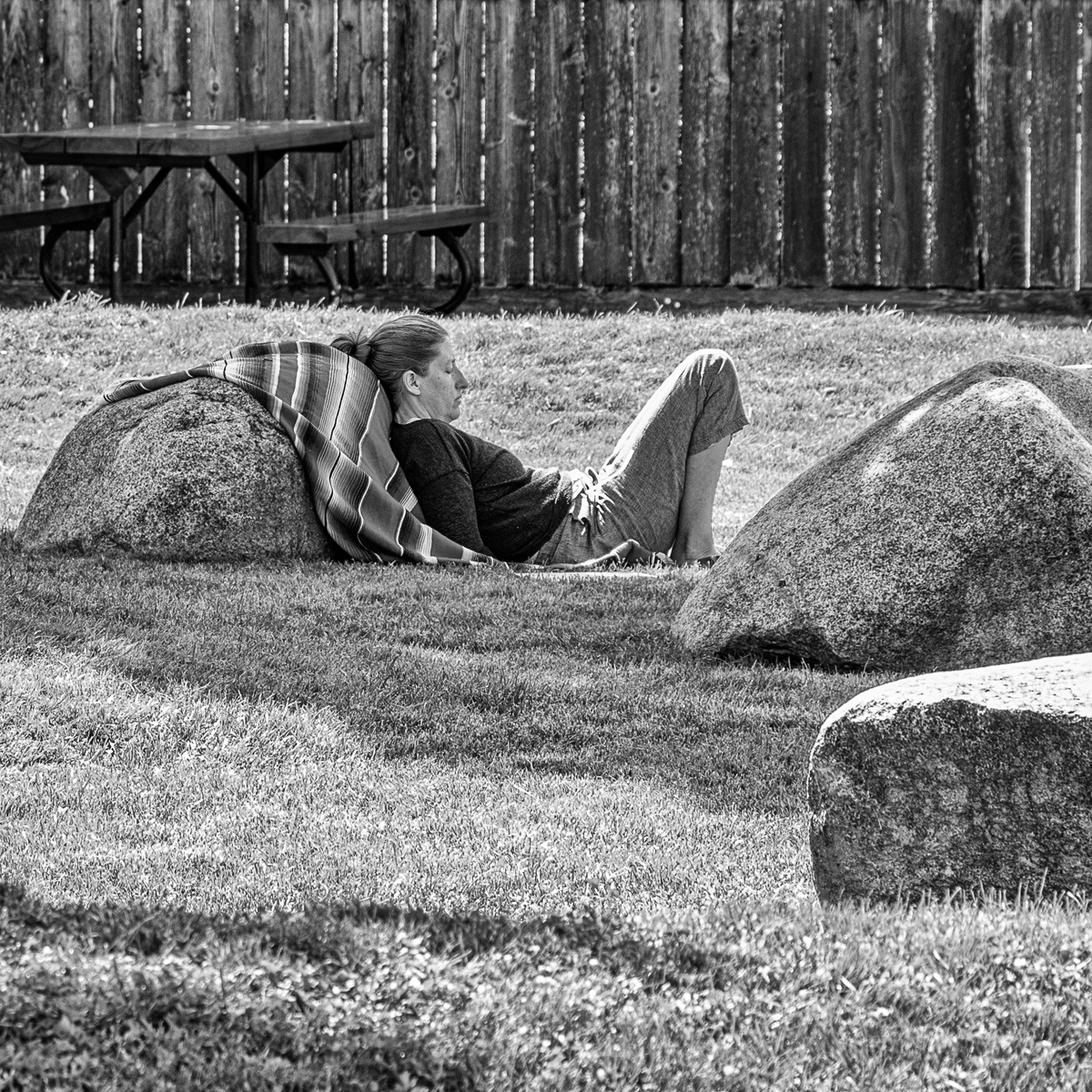 I like the image it is well done, I wonder what the pole, Bev mentioned ,is for. I am guessing it is for some sort of shade over the singer-musician Not sure if removing it would make much of a difference. |