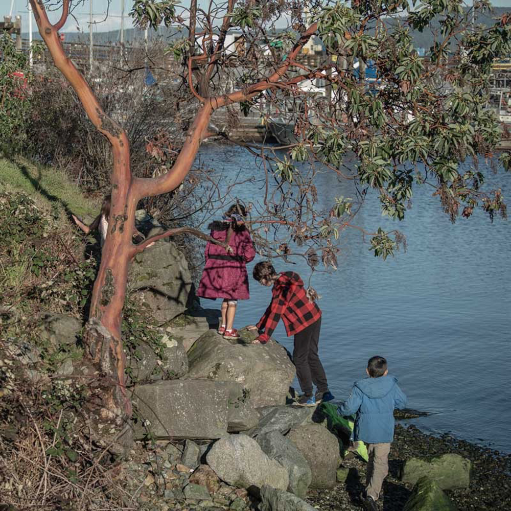 Three ladies happy to pose and get a break from their daily? work. While more of the surroundings would add to the story and give some context, I think the moment as well captured in your image, ie: the facial expressions, would be lost |