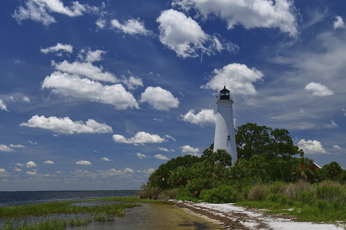 Tom I took the liberty to crop your image as I was suggesting in my previous comment.I think in this way the lighthouse becomes the subject of the image. I also open a little bit the shadow so you there is now some details in the trees around the lighthouse that looked very dark.
