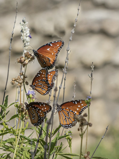 this is a very nice images and you captured well the beauty of these butterfly. I would respectfully disagree with Nigel, and found the square crop not the right one. The square crop for not symmetrical image I think does not work and creates tension. I think the 4 butterflies on the left just scream for a vertical crop. I also found the grass over the top one distracting. I know is there and if it was a "nature" photo, you would not be allowed to clone that out. However, this is digital section and this is allowed. I took the liberty to crop the image and clone out (very grossly) the grass. Let me know what do you think.