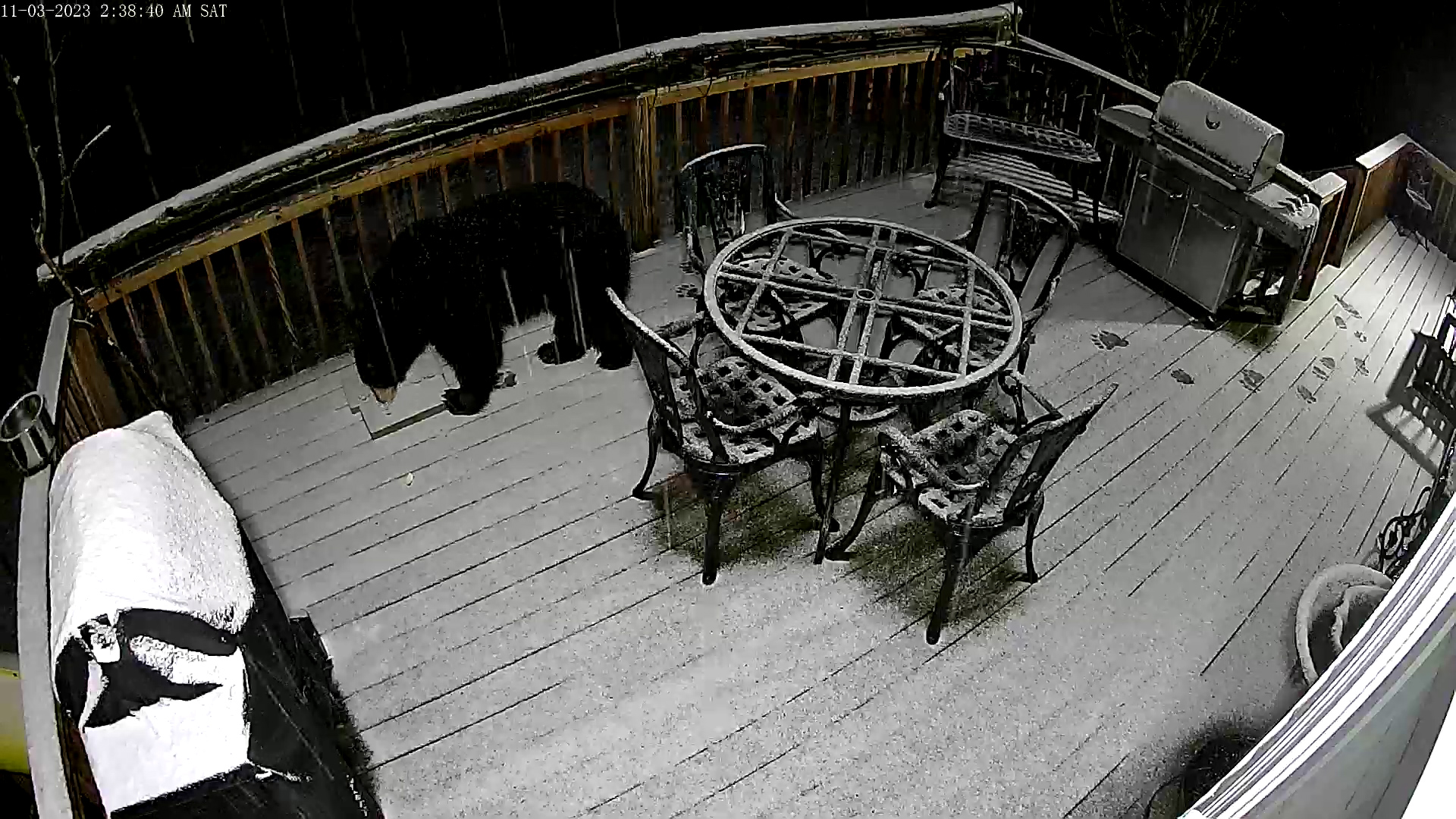 p.s. the photo below is from March 11, a bear stopped by to clean up anything the birds left behind :-). The bear is licking the spot I feed the hawk.