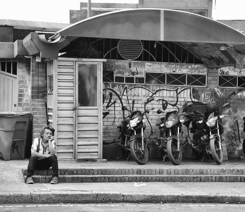 This picture reminds me of "Migrant Mother" I like the picture I recropped it to give the picture a little more balance, emphasizing the motor bikes on the right so that they now look like they are looking at old man. |