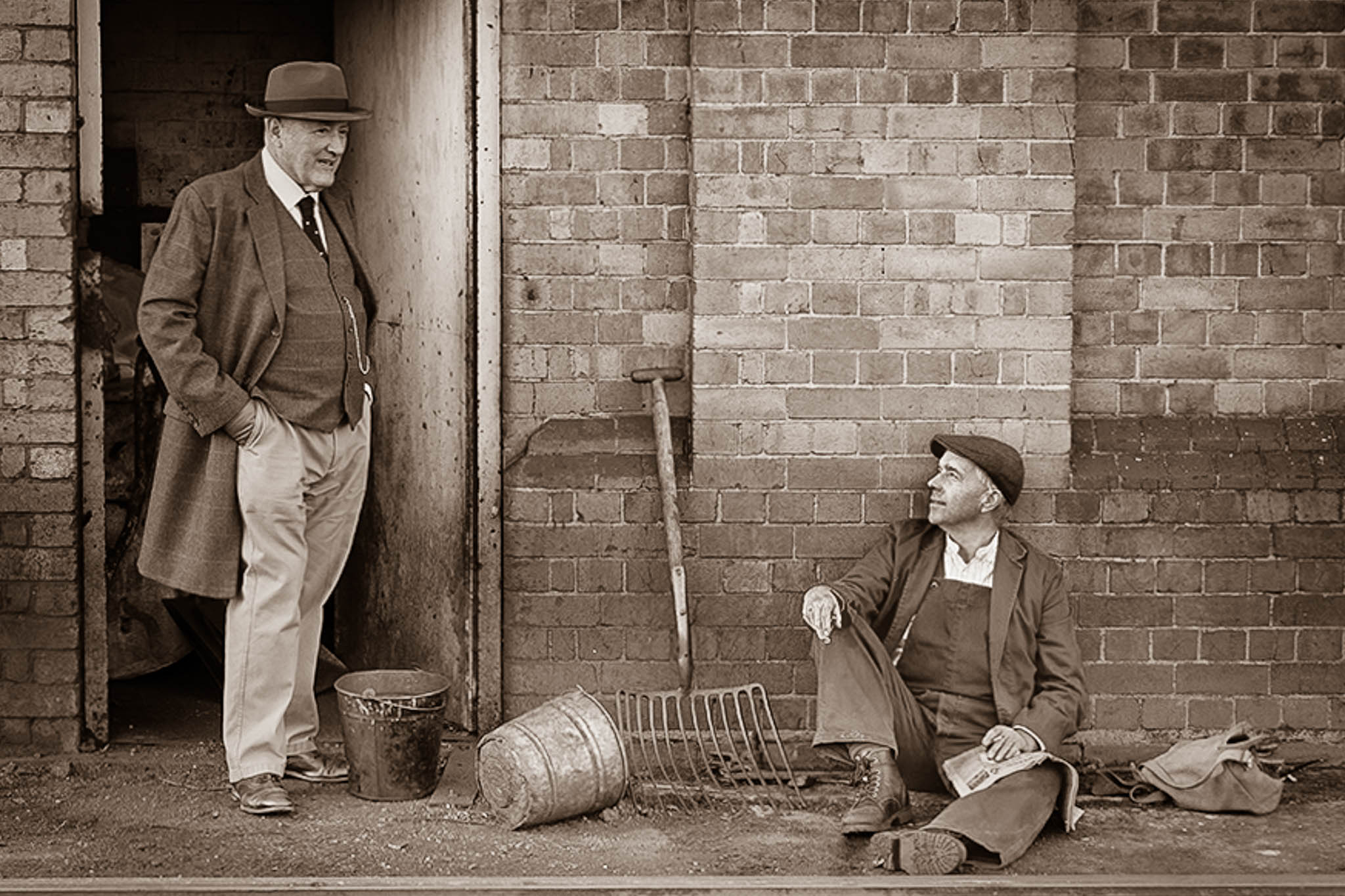 This is a very neat image and one which feels like it has a story behind it... almost as though there is history and meaningful relationship between the manager and the worker, who are mutually ruminating on some topic of significance.