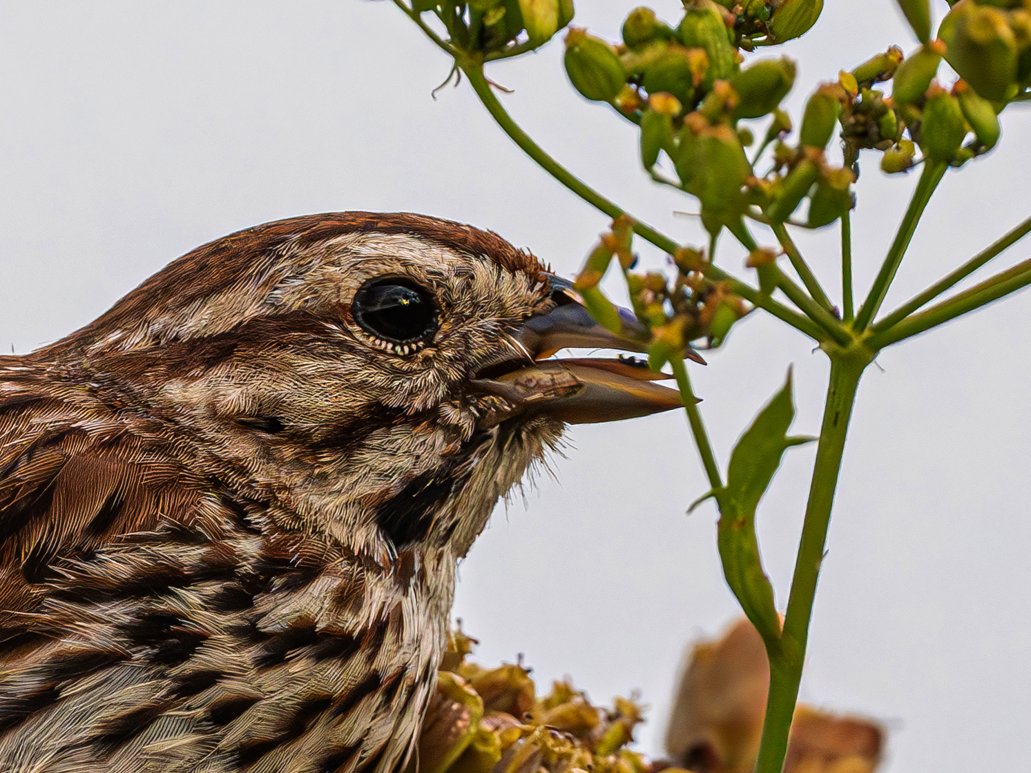 When I sharpened the bird, even slightly, I kind of got a white outline around the upper part of its body, which I didn't like. I did this by choosing a subject mask. But I found I could get rid of the outline by creating a background mask and lightening the background enough until the outline disappeared.