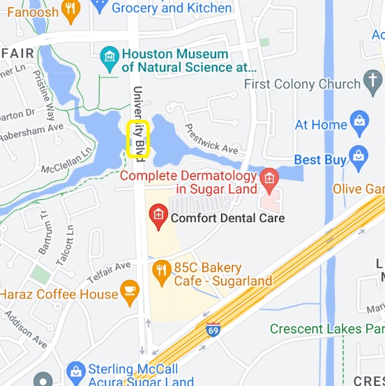 Hi Charles, thank you for your comment. The bridge is located on University Blvd, Sugar Land, Tx. I don't know the name of the bridge, and I couldn't find it by googling it either. However, the yellow box in the attached screenshot from Google Maps shows where it is located. The bridge is decorated with holiday lights every year throughout the holiday season, and the best time to see the lights is early morning, i.e. during the blue hours, from the east side. |