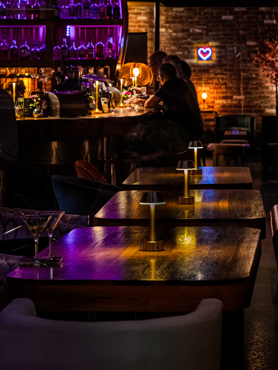 Thank you for your input regarding the background lighting-I've made some adjustments. I dimmed the three table lamps and brightened the background. Now, the lamps form a leading line that draws the viewer's eyes toward the bar in the back. I'd appreciate your critique, and thank you again! |
