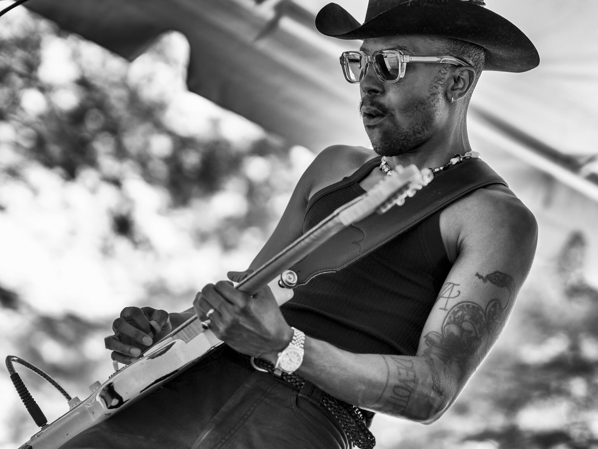 Stacey - I did not realize what was troubling about the image until Trevor mentioned the tattoo being lost. I thought it went unnoticed. (too bad - I like tattoos) I pulled your image into PS and did a selective capture with the lasso tool on some of the arm and some of his face and lightened the arm 18% and the face 8%. It gave me a clearer look at that beautiful tattoo. |