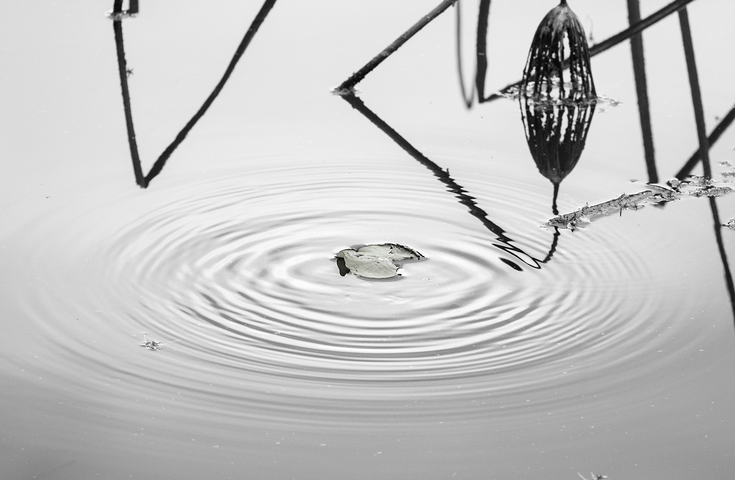 Haru - I studied this for a long time. My attention always goes to the big dark flower on the right then to the diamond-shaped figure on the left. I went back and forth and hardly noticed the leaf, even though the title is "A Ripple". In this case, I think the color image is the winner. The reason is that the 'subject' - the leaf- stands out because of the green. Also the browns are softer and easier on the eyes. For me, the mono is just a study in complication. I believe it might be more interersting if it were severly cropped. I think the lighting and shadins if good.