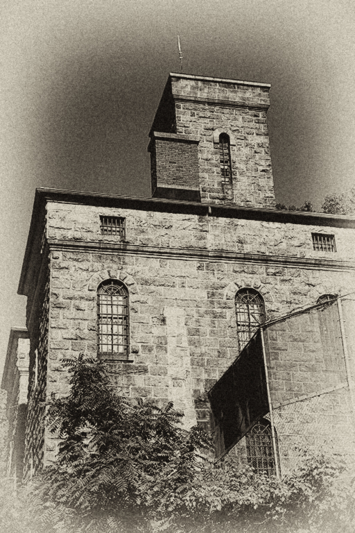 This is a scary image for me. I once worked for an architect that specialized in jails. Among others, I got to see the big jail in Marion Ohio, which was built around the same itme as this. Except your mental picture with the noose still hanging is really creepy. I LOVED your image, because it reminds me of other things, but also because it is so colorful and full of LIFE. It really is a beautiful building and your photo shows all the details - your capture of the light and texture of the stone walls is really good. I could not resist making this an OLD photo so I renmoved the wires and played with it a little. Sorry! |