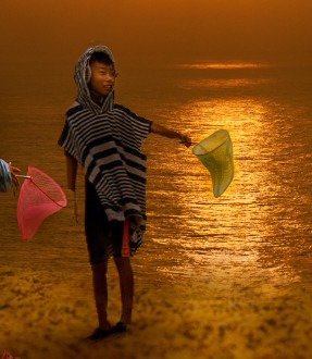 Maria - First, the treatment of the original sunset is very beautiful, and also very even, which is not always easy. Your collection of add-ins is nice, although I feel sorry for the turtle. The children are very good, and their poses are beievable. I was wondering if the nets were added in (I think so, because the hands do not seem to be cosed around them.)