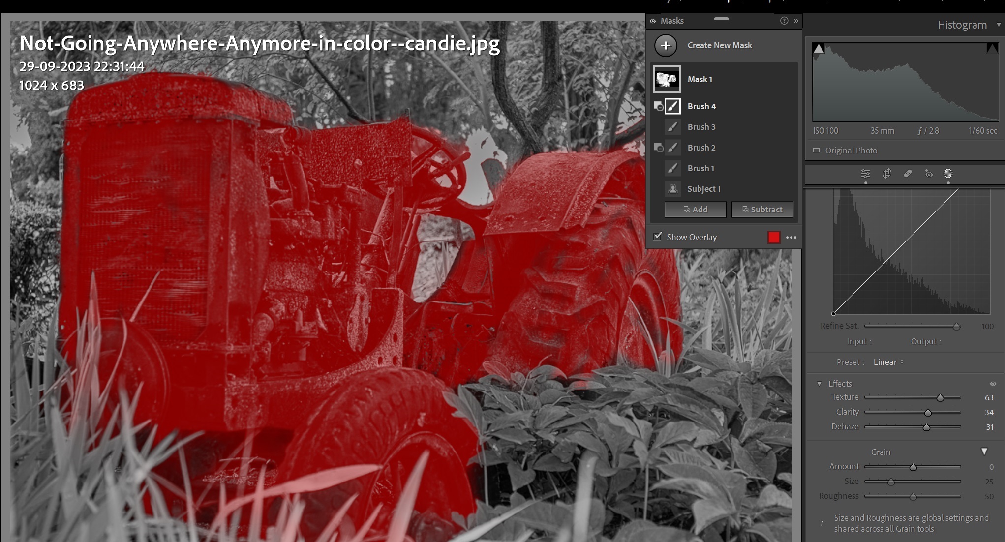 And this is my mask in LR to selectively adjust contrast etc in the tractor |