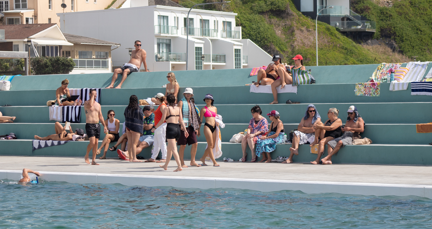 I like the black and white. It does look like something from the past, with just a hint of people on the far right. I think having the third palm tree on the left balances the picture. |