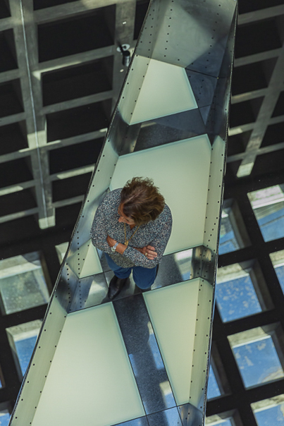 Ally, if you hadn't said you happened upon this woman, I would have thought it was a set up. How convenient that she is standing in the middle of a triangle. I wanted to place more emphasis on her so I twisted the image in Lightroom which resulted in a bit of a crop. Definitely like the color better. |
