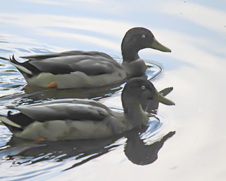 I like the pattern of the symmetry of beaks with one crossing a beak reflection. Good to remove the stick and spots and to reverse the image. I started over and used Photoshop, Filter, Camera Raw, and then Shadows to bring out the image more and Detail, Noise Reduction. I think the orange legs look good and prefer that to black and white so I increased saturation. I added eyes as you did and included highlights. You accomplished a lot with a little. |