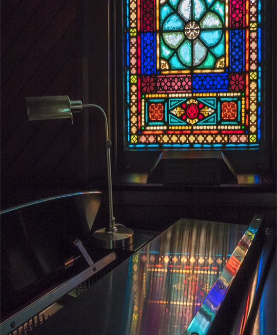 Good reflections to emphasize the brilliant colors. The lamp provides context for the organ console. A leading line can come from the lower left corner by cropping and stretching the image while maintaining a pleasing aspect ratio. I have attached a photo. |