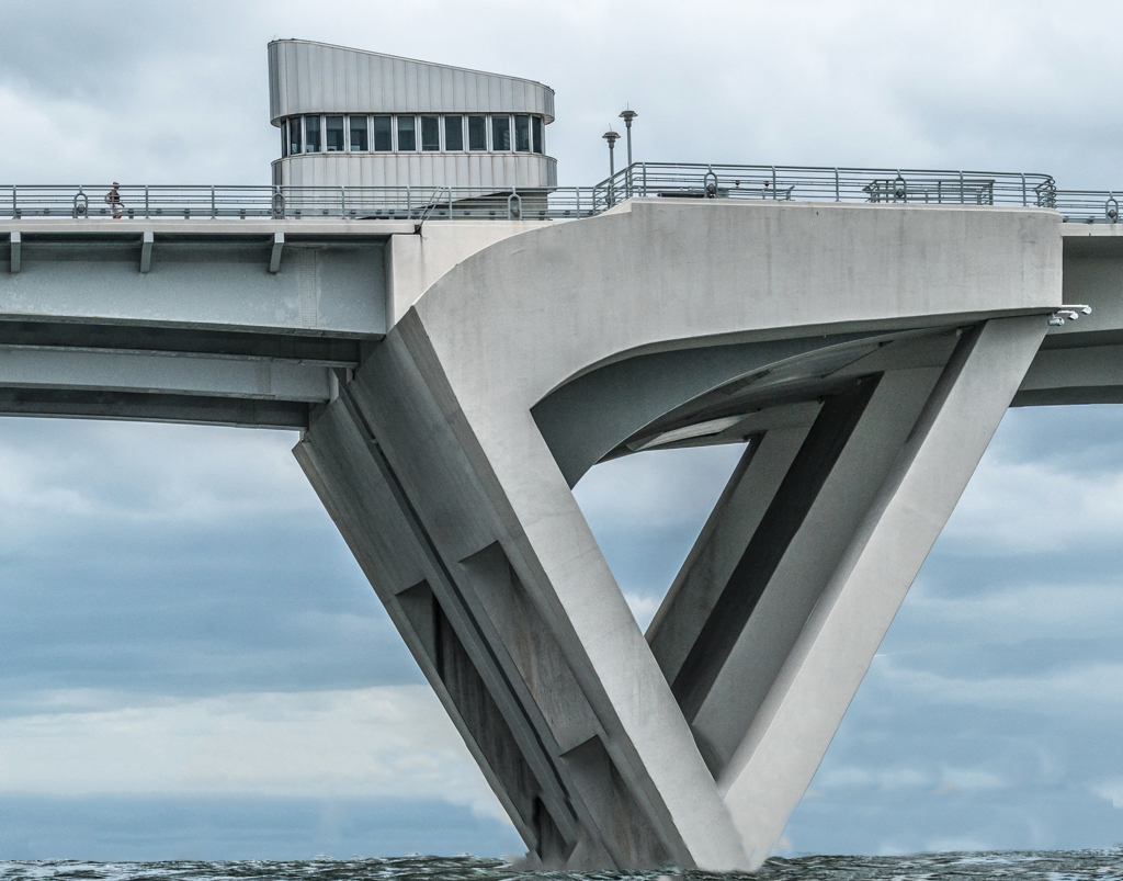 Good colorful, diagonal image. I tried cropping it farther and it made the ducks more noticeable, a good secondary feature, while minimizing the less interesting bridge. |
