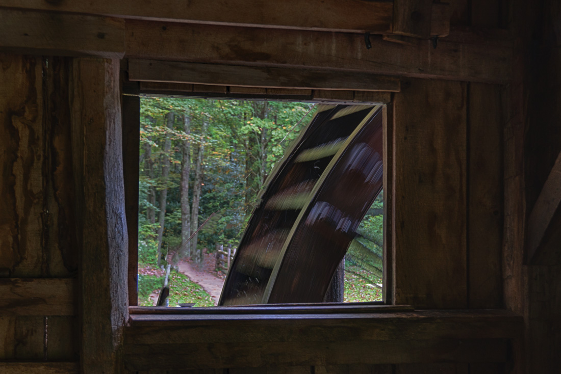 An engaging photo with good color. I would darken the whole image to both make the trees less washed out, and the building interior darker and more realistic. Motion of the water wheel adds good action. Blue spot lower left could be removed. I got carried away and made the submitted version that could be done more carefully. |