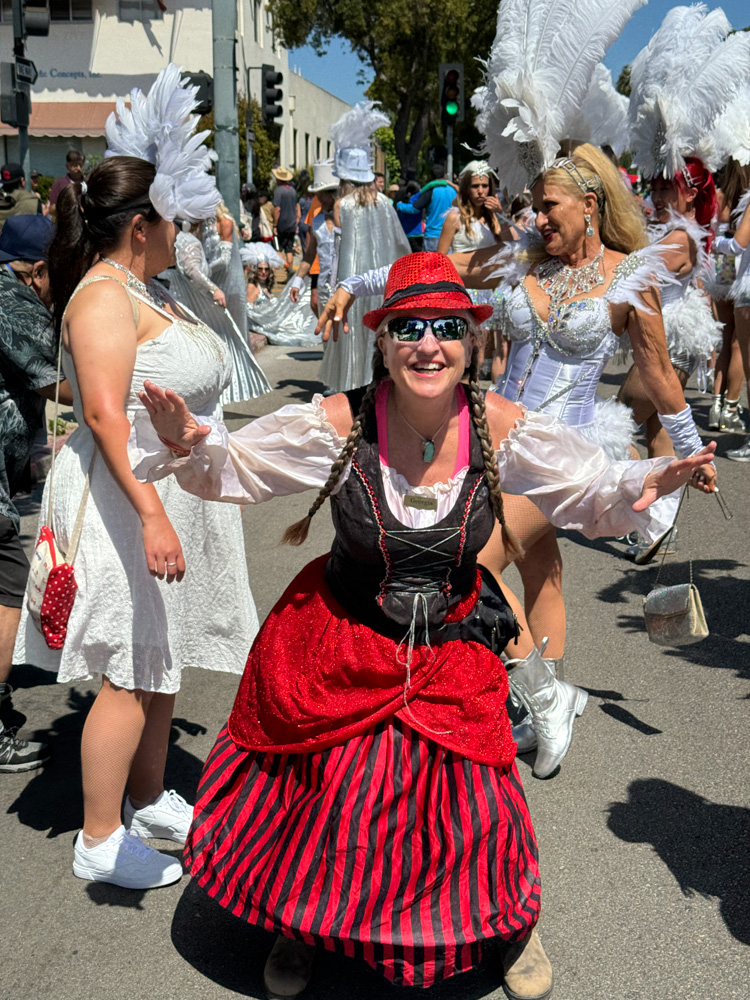 Delightful pose of a beautiful woman. Fill flash would have helped, or the equivalent post processing. Eyes open would help too, but perhaps the squint expression is good. The background does not bother mel |