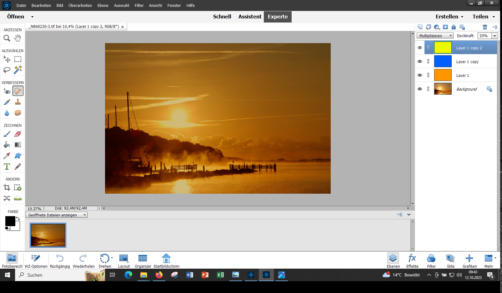 Thank you for your comments. If you compare the original to the edited image the only thing I did was to make the image a little bit darker. The sun shouldn`t shine so brightly. To reach this I worked with color layers, multiplied them and reduced the opacity. I used blue so it doesn't look so cheesy.