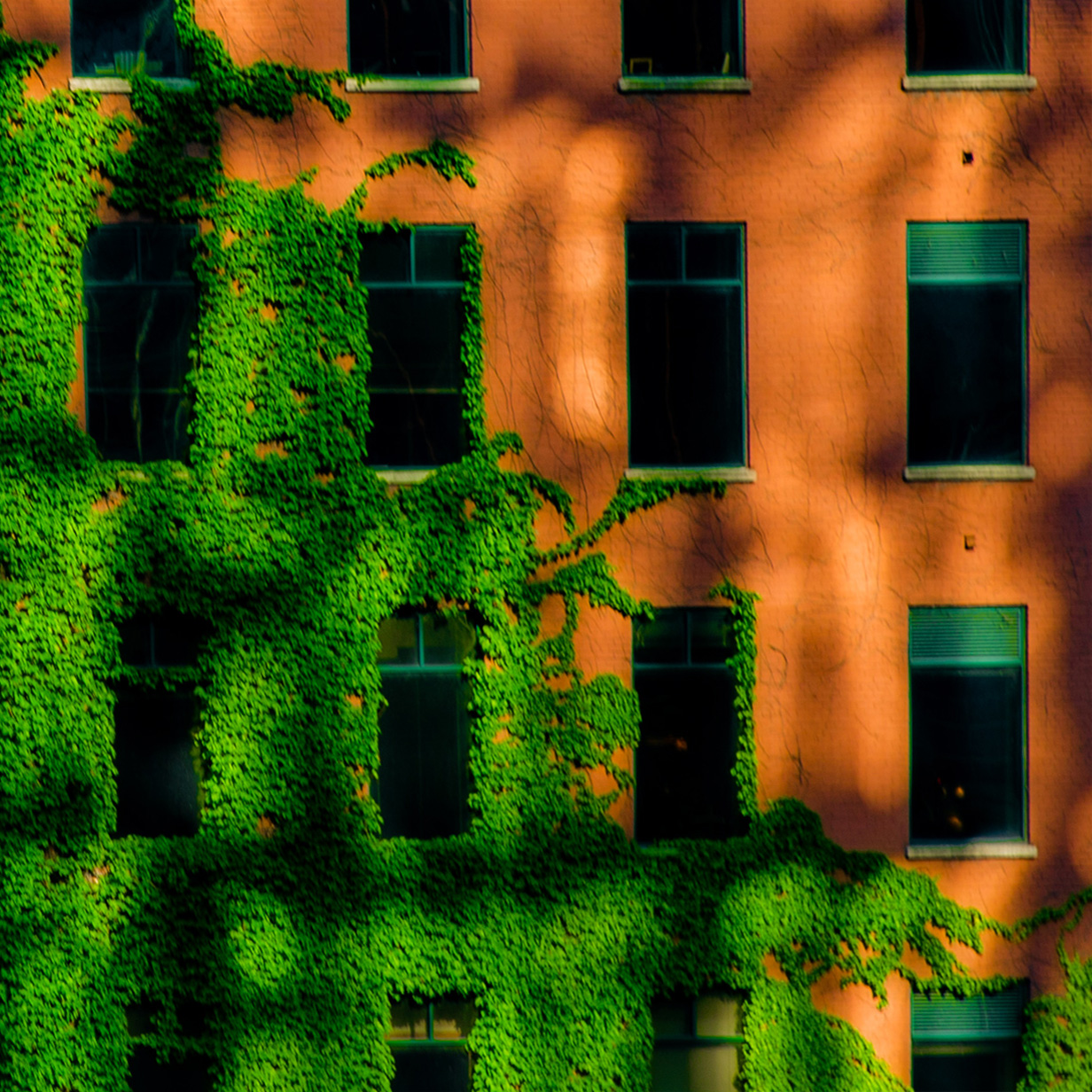 Yvonne, I love the colors, especially the warm orange in the morning light. The green on one hand supports the orange and on the other hand contrasts the orange. The ivy coming up from the lower left tells a story for me. A story of nature and environment/buildings living in a harmonious relationship supported by the light. Well seen.