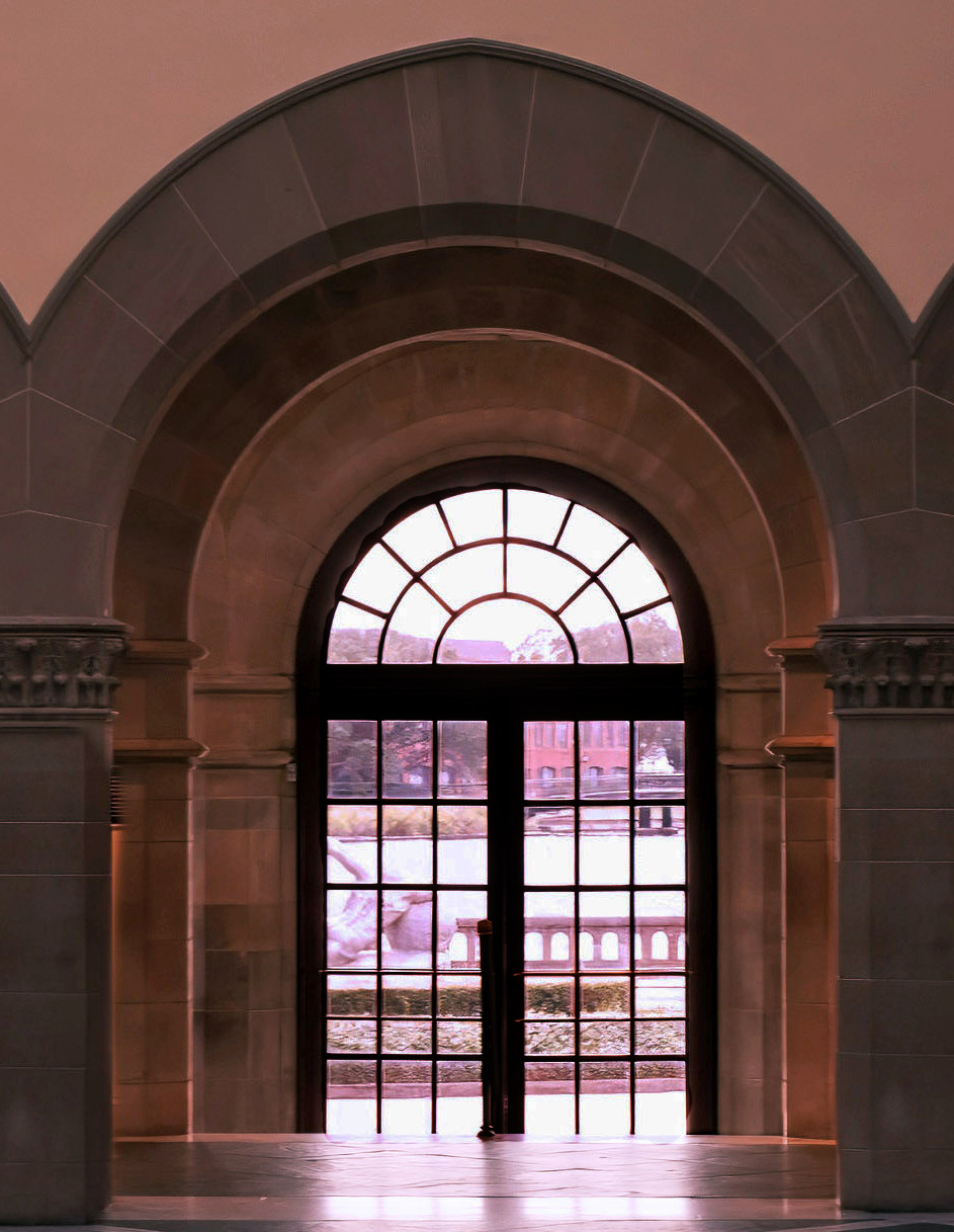 I would have gone a little to the left before taking the photo. Then the artwork would stand between the two arch lines.
