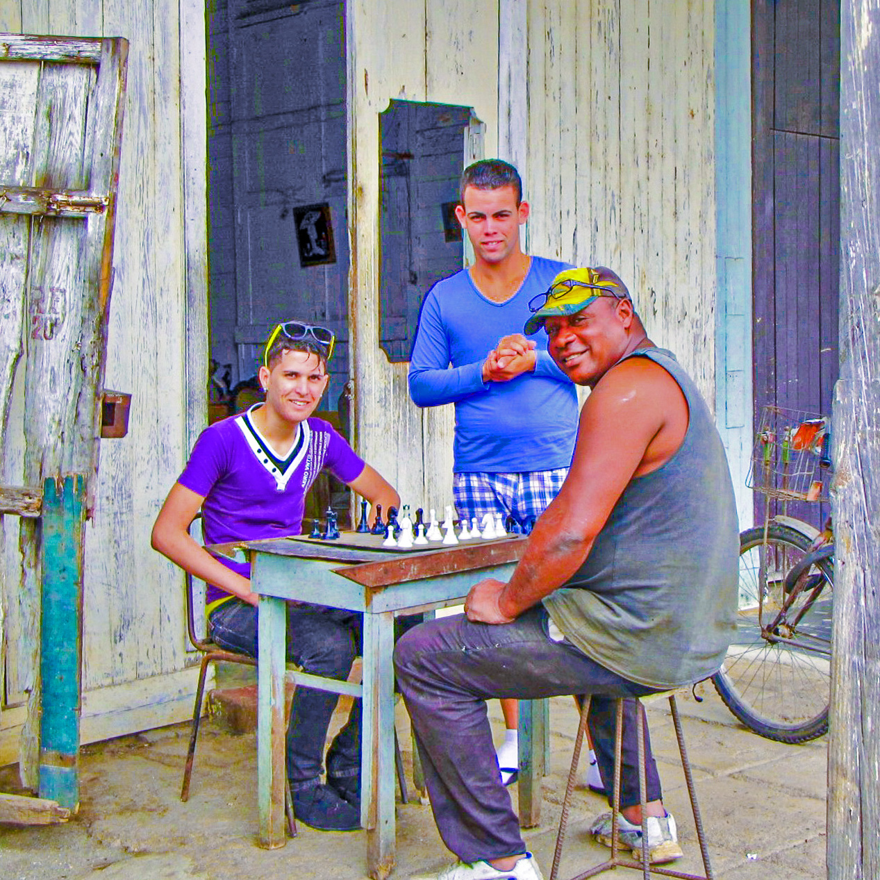 Doug, Always interesting looking at a street photo and reading the story behind. You really captured a normal life situation. I like the way the men were looking into your camera. To me they look happy and behave completely normally - no posed situation. Well done!