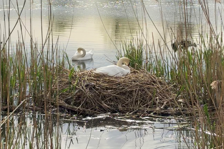 You might also like my idea of editing the original photo. I changed the format slightly, increased the saturation a little and made the swan in front a little brighter with the dodge tool.
