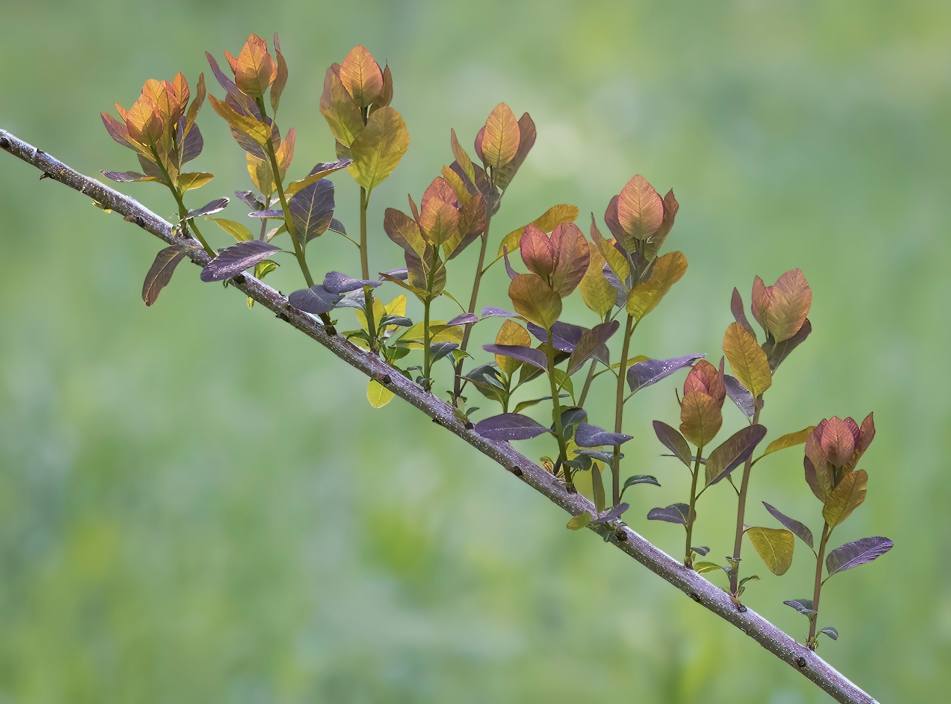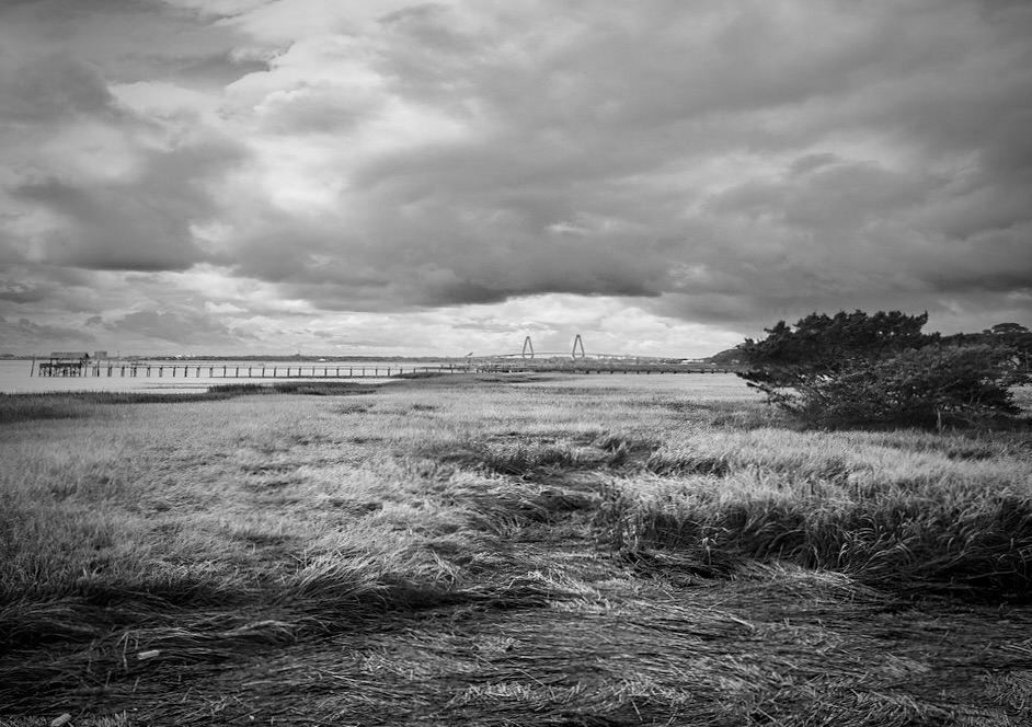 Two things: the color image is really beautiful -- the wide array of greens and grays is quite lovely. You did a great job with your composition.