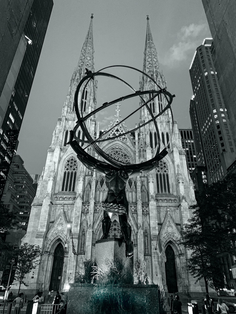 I took a slightly different approach and just lightened the plinth as I really like the people in the foreground - gives scale and humanity to both the statue and St. Patrick's.