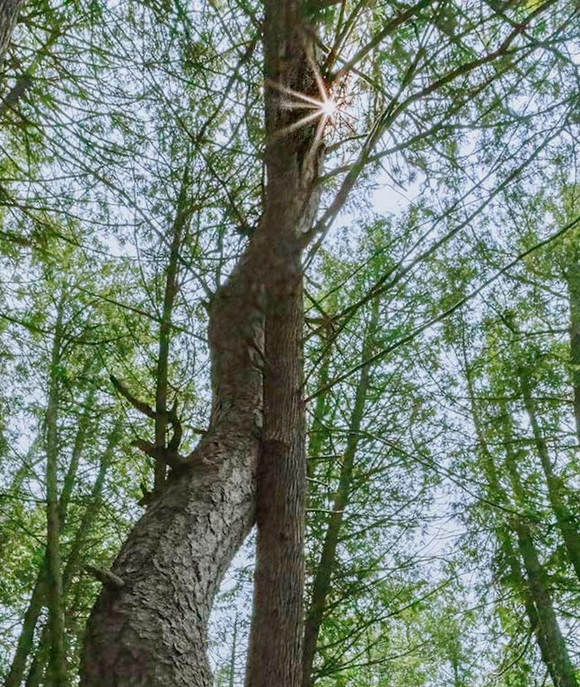 I took a different approach by cropping the photo and also straightening the main tree so that the curved one looks subordinate.