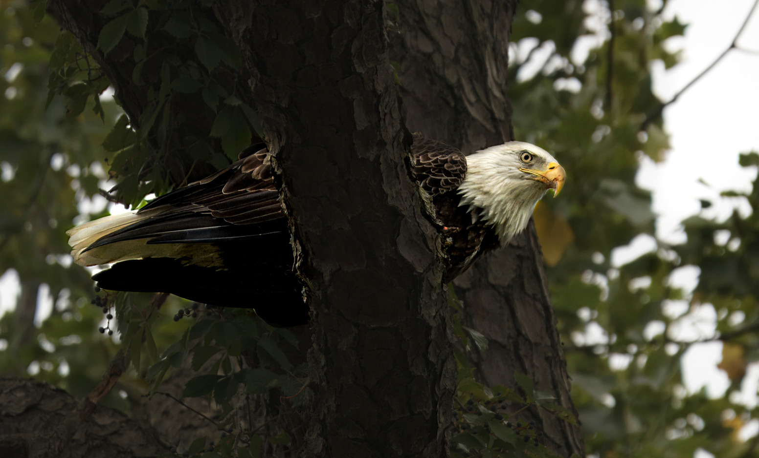 I LOVE this crop! I think this is a great shot - I love the yellow of the birds feathers against the green background and red leaves. I hope that you have it printed and hanging on your wall. |