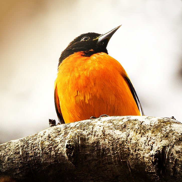 I love the yellow of his feathers against the blue background. He looks very regal and proud to me.