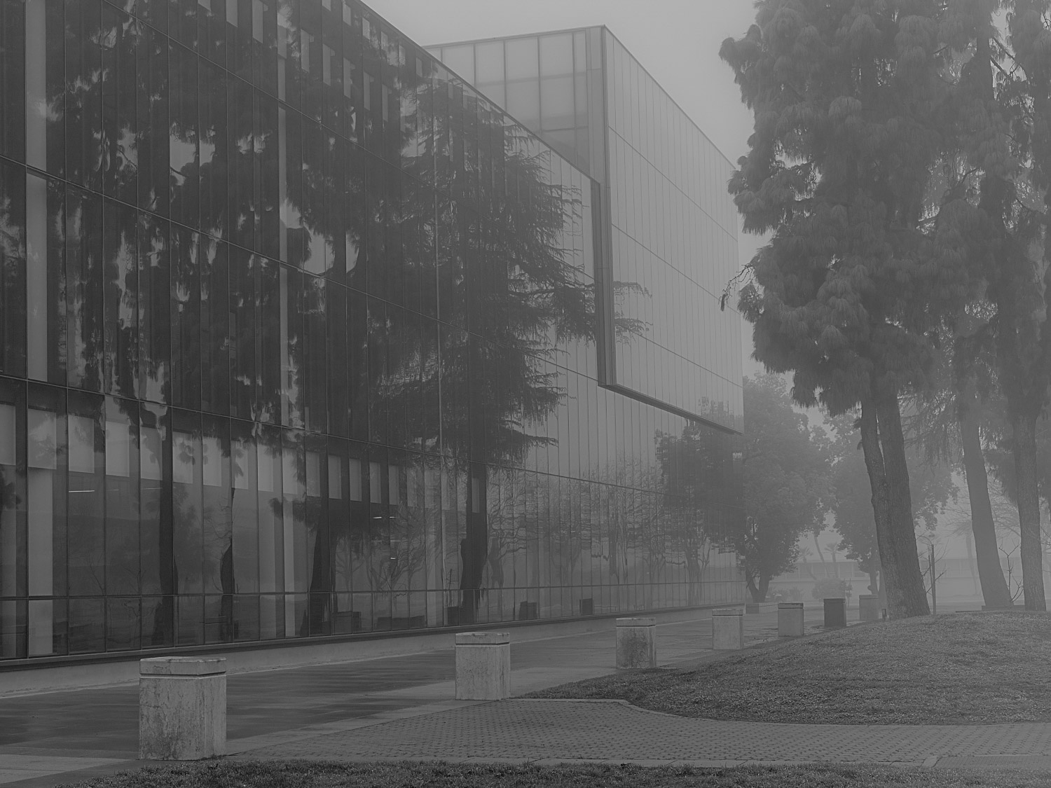 This is a lovely photo! Great leading lines and I especially like the reflections in the building. I think that it is a great photo as is!