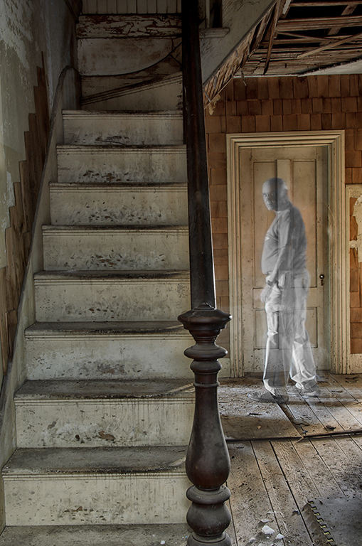 Dolores, Thank you for your feedback. I do have the ghost in color but he blended in too much with the surroundings. I opted for the B&W to offset me, er him. |